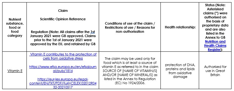 When adding a source of Vitamin E to fortified foods or food supplements certain permitted forms are allowed depending on the category and we have listed these below. To declare the amount of Vitamin E each form must be converted to its d-alpha-tocopherol equivalents (a-TE) in mg.